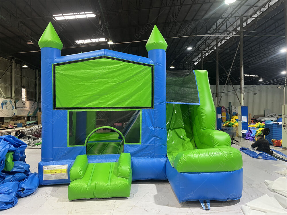 Yeşil Zıplama Kalesi Özelleştirilebilir Kale Şişme Zıplama ve Kaydırak Kombosu